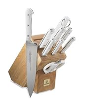 Mundial W5100-10 Review: Mundial 5100 Series 10-Piece Block Set, White. My mom has a nice sharp set of cutco's and I have always loved them. My brother has an expensive set of Heckles witch don't compare to the cutco's. A cutco set with 6 knives, a fork, a block, and kitchen scissors (exactly what this Mundial set includes)costs $600, plus another $100 for the kitchen scissors. I absolutely love my Mundial set, they are just as good as the cutco's at such an affordable price! I love the white handles, very classy, and not many brands offer this look. 2 ... Read more »