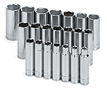 Cheap SK 1947 21 Piece 1/2-Inch Drive 6 Point 10-Millimeter to 32-Millimeter Deep Socket Set. All sockets feature SKs patented SureGrip hex design, which drives the side of the fastener, not the corner, to avoid edge breakage SuperKrome plating produces a jewelry-like, mirror-polished finish thats highly corrosion-resistant to help assure long life. Flex design provides improved access Patented SuperKrome finish for durability and maximum corrosion resistance SureGrip hex design drives the side of